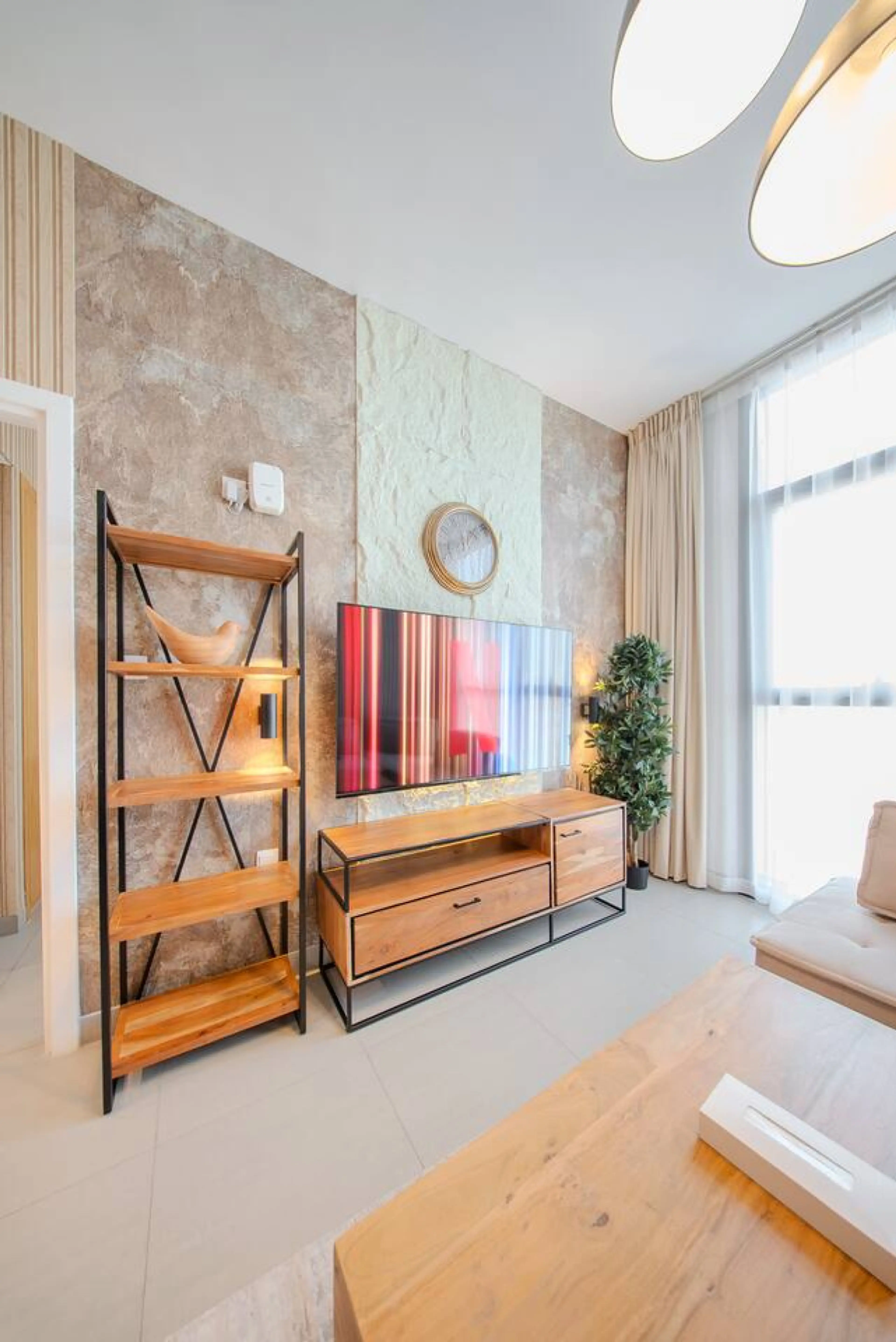 Welcome to our luxury apartment in Al Mamsha. - 5th floor Apartment - Separate Living Room with Sofa that converts into a full bed - Brand new Apartment built in feb 2025 - Al Mamsha offers a variety of coffee shops, cafes, grocery stores, and play areas, making it a vibrant destination. - Kit...